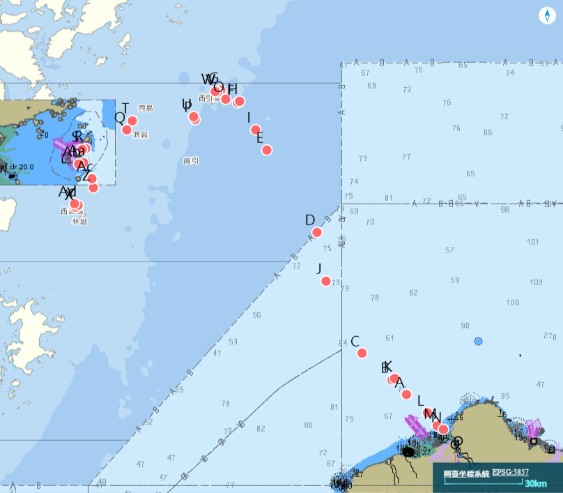 (2)The affected area in the Northern Taiwan waters extends from the landing point at Bali, New Taipei City, through Dongyin Beiao, Nangan Fuxing, and Nangan Shanlong in Lienchiang County, to the landing point at Xi Ju Xiatiantou. The Southern section extends from Haomeili, Chiayi, through Lintou and Xiaochijiao in Penghu, to the landing point at Zhaishan, Kinmen.